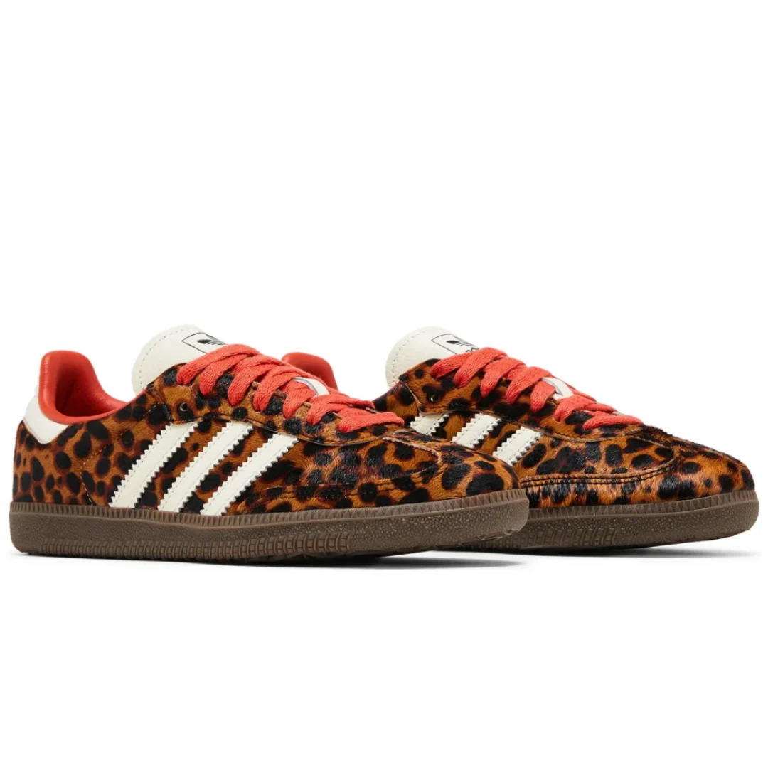 The adidas Samba OG ‘Cheetah Pack – Preloved Red’ takes one of adidas’s most timeless silhouettes and reinterprets it with fierce confidence and bold luxury. This limited-edition release blends the Samba’s heritage football DNA with an exotic, fashion-forward twist inspired by the energy of wild animal patterns.
