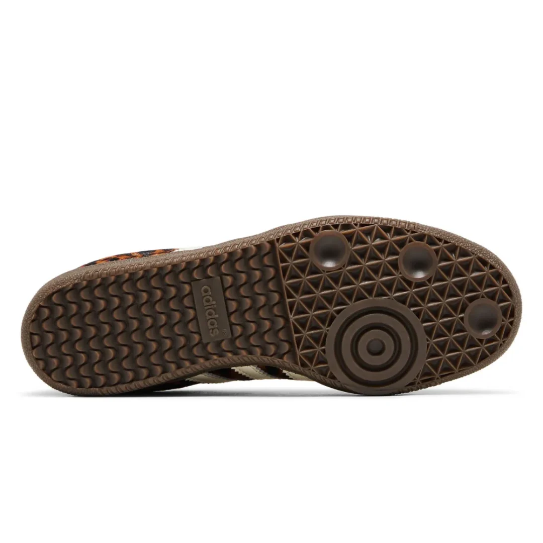 It features animal-print accents and rich textures that add high-fashion energy to the Samba classic.