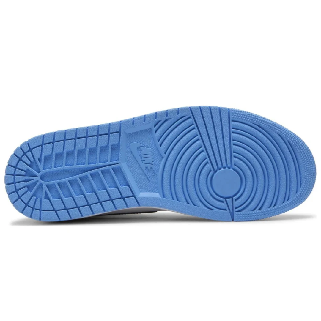 Crafted with premium full-grain leather, this model retains the classic Air Jordan silhouette while introducing a vibrant University Blue toe box.