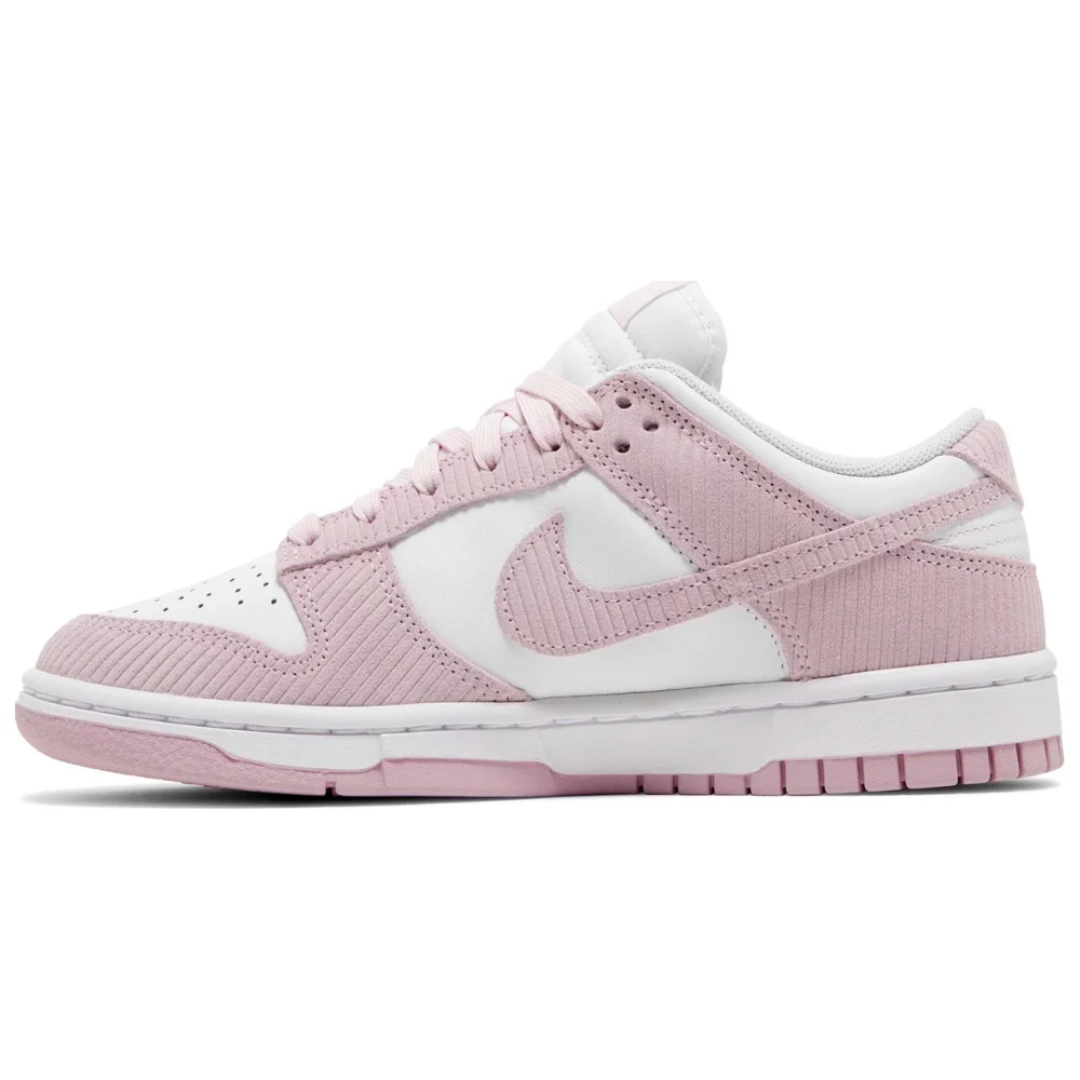 Bring a fresh dose of color and texture to your wardrobe with the Dunk Low ‘Pink Corduroy’. This version of the iconic Nike Dunk stands out with its smooth pink corduroy upper and classic white leather overlays, giving it a modern yet vintage vibe. The soft textile texture adds a unique touch to the familiar Dunk silhouette, making it perfect for both casual outings and everyday wear.