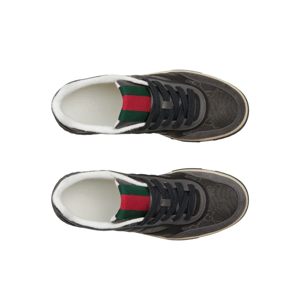 The Gucci Re-Web Sneaker ‘Grey’ exemplifies Italian craftsmanship and modern design through precision detailing and luxurious materials: