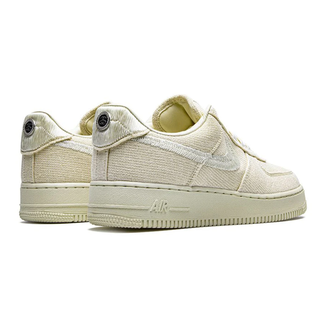 It combines Nike’s iconic Air Force 1 silhouette with Stussy’s minimalist and handcrafted aesthetic.