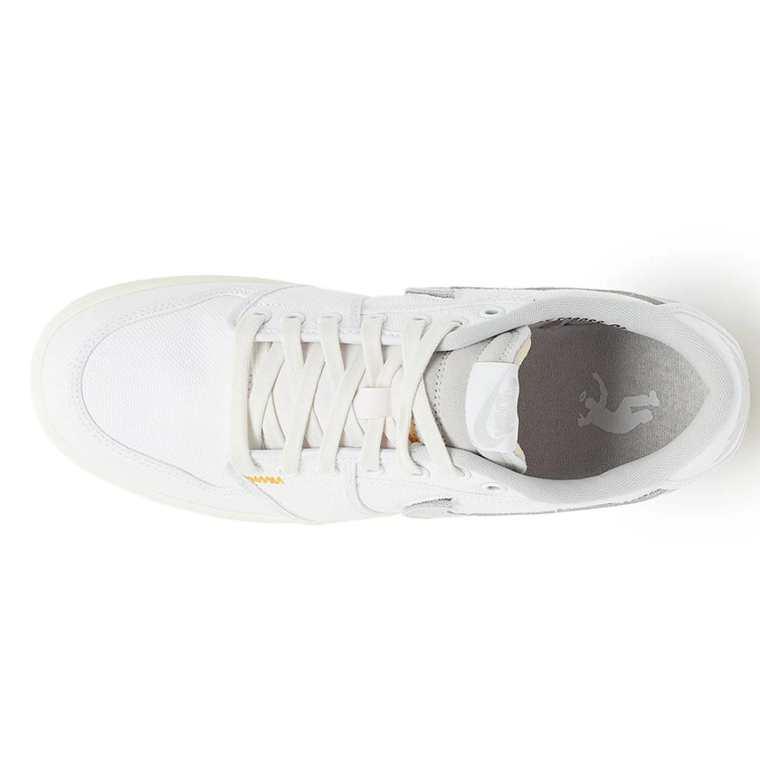 Crafted from canvas and suede, the Nike x Union LA Air Jordan KO 1 Low SP features a neutral sail base with subtle stitching details, complemented by Union’s signature “UN/LA” tag near the eyestay. The detachable Swoosh patches allow for personalization, while the exposed yellow stitching and vintage midsole add a worn-in, retro feel. The low-cut design enhances flexibility, and the Nike Air cushioning ensures lasting comfort.