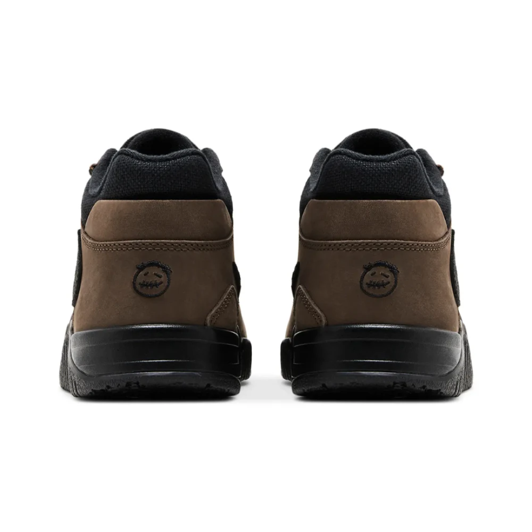 Swoosh: Iconic reversed Swoosh in tonal brown finish — Travis Scott’s signature detail